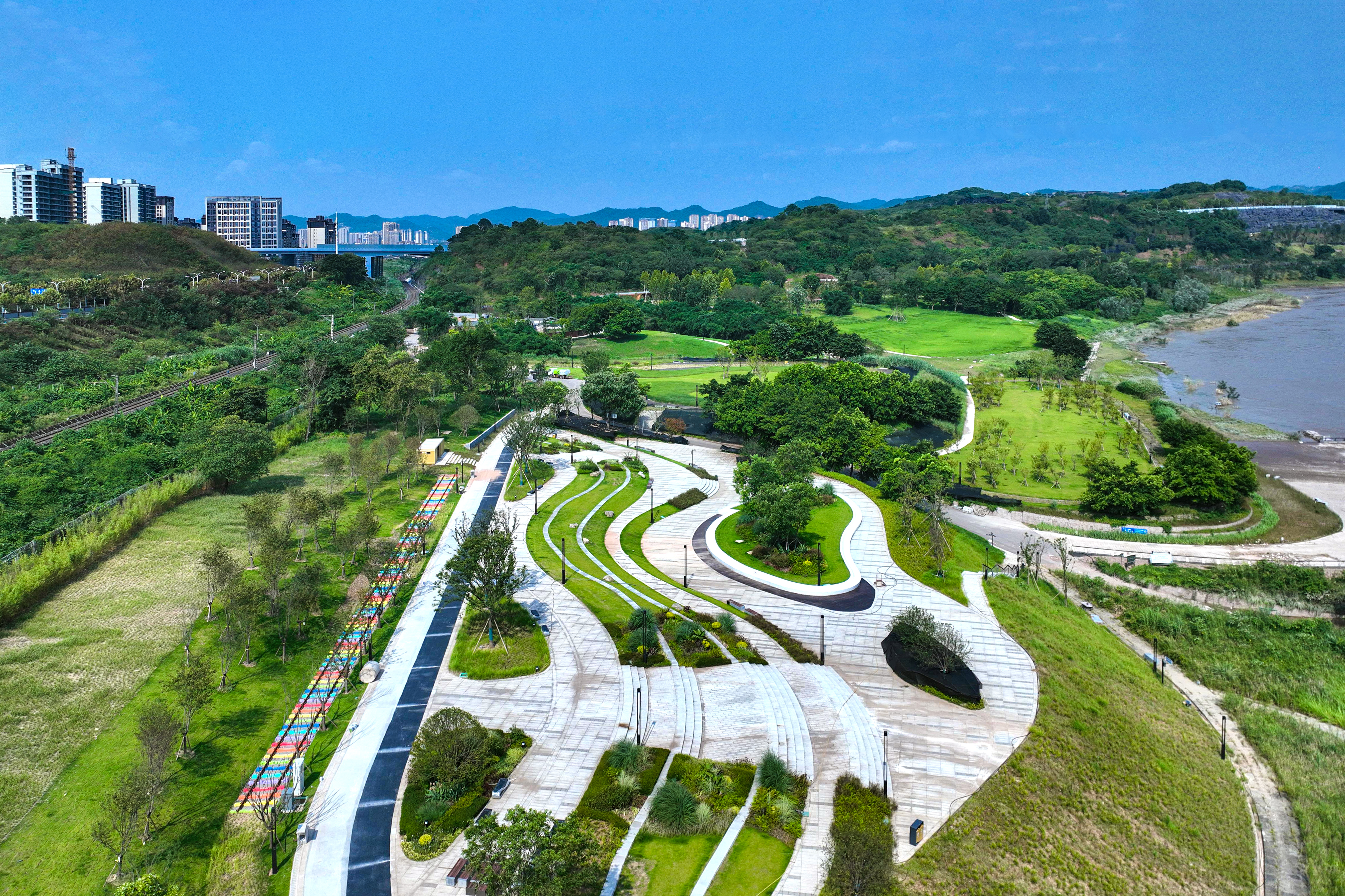 中冶建工承建的重慶“兩江四岸”治理提升長(zhǎng)江北岸線延伸工程釣魚(yú)嘴濱江段項(xiàng)目,是重慶市重點(diǎn)工程,也是“兩江四岸”治理提升重點(diǎn)項(xiàng)目,全長(zhǎng)約4.2公里,通過(guò)微改造,巧妙利用現(xiàn)有草海、森林、江灘等資源,彰顯原生態(tài)自然景觀,使生態(tài)美景連點(diǎn)成線,讓群眾享受更多開(kāi)窗見(jiàn)景、推門(mén)見(jiàn)綠的城市空間,成為全國(guó)各地增植補(bǔ)綠、打造生態(tài)宜居城市的典范。