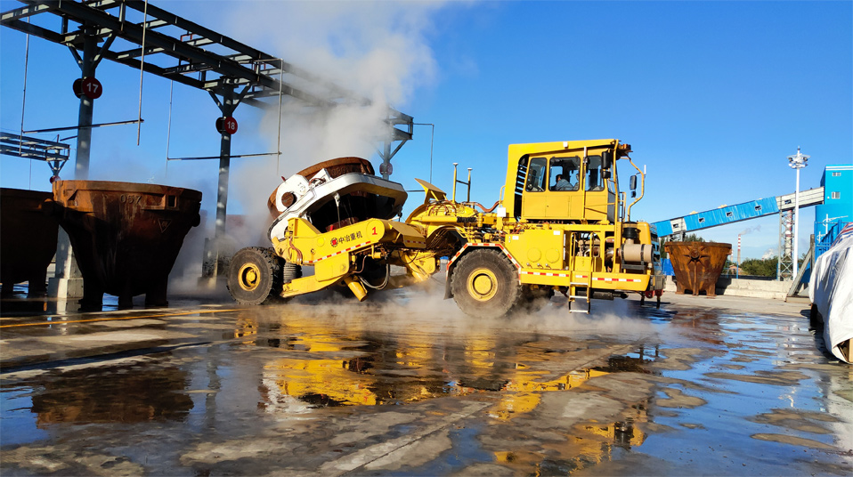 由中冶寶鋼研制的70噸鉸接式抱罐車(chē),采用鵝頸鉸接型式,額定載重75噸,重載最高時(shí)速為每小時(shí)20公里,翻罐角度105度,最大爬坡能力8%,最小轉(zhuǎn)彎半徑9米。該車(chē)型應(yīng)用專(zhuān)利技術(shù)10項(xiàng),在國(guó)內(nèi)有色冶煉市場(chǎng)占有率超過(guò)75%,先后榮獲中國(guó)有色工業(yè)協(xié)會(huì)、中國(guó)鋼鐵工業(yè)協(xié)會(huì)科技獎(jiǎng),中國(guó)施工企業(yè)管理和中國(guó)循環(huán)經(jīng)濟(jì)協(xié)會(huì)專(zhuān)利獎(jiǎng)等榮譽(yù)。